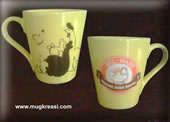 Mug coating adalah mug biasa yang diberi lapisan tertentu. Lapisan ini dapat mentransfer gambar dari kertas ketika dipres dengan suhu tertentu. Mug ini tersedia dalam berbagai warna dasar. |