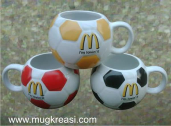 Bentuk seperti sebuah bola tapi ini adalah mug. sangat bagus bentuknya . sangat banyak dicari terutama bagi penggemar bola kaki