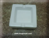 Asbak ini disebut asbak kotak bujur sangkar karena semua sisi sama ukurannya yaitu 8.3 x 8.3 cm. Tingginya 3 cm. terdapat 2 lubang rokok. Dengan dekorasi dekal pada 4 sisi dan tengahnya. |