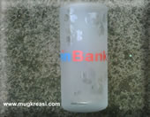 Terbuat dari bahan gelas atau kaca, diproses dengan cara frosting sehingga tampak buram. Memiliki tinggi 11cm, diameter atas 7.5 cm, diameter bawah 5 cm dan memiliki handle yang unik. |