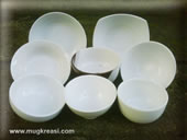 Ukuran mulai dari ukuran kecil hingga besar, biasanya digunakan untuk mangkuk sambal, mangkuk bayi dan mangkuk bubur, mangkuk saji dan mangkuk sayur. |
