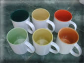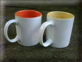 Mug coating adalah mug biasa yang diberi lapisan tertentu. Lapisan ini dapat mentransfer gambar dari kertas ketika dipres dengan suhu tertentu. Mug ini tersedia dalam berbagai warna dasar. |