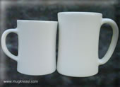 Mug Ini disebut mug miring karena bentuknya yang miring, Mug ini terdiri dari 2 ukuran yaitu mug miring standar dengan tinggi 9.5, diameter 8cm. Dan mug miring kecil dengan tinggi 8.5cm, diameter 7.5 cm. |