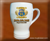 Mug ini lebih dikenal dengan mug nescafe karena bentuknya yang mirip dengan hadiah dari pembelian kopi merk nescafe. Tinggi 9 cm, diameter 7.5 cm, dengan bentuk handle yang agak kotak. |
