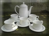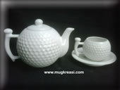 Item ini disebut Tea set Golf karena kaitannya sangat erat dengan permainan golf. Umumnya yang memesan item ini dari kalangan pecinta Golf atau personal para golfer pribadi masing-masing. 1 set tea set golf terdiri dari 1 teko dan empat pasang cup saucer. |