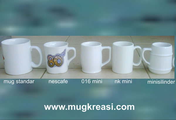 Mug Ini adalah cangkir biasa dengan ukuran jumbo yang dibuat lebih kecil, kira-kira serupa dalam ukuran cangkir Nescafe. memiliki ketinggian rata-rata 8, 5 - 9cm, diameter rata-rata 7-8 cm. beberapa mug jumbo yang kami yang sekarang kami produksi diperkecil dari ukuran biasanya antara lain gelas bir 016 mini, Nk mini dan mug silinder mini.
