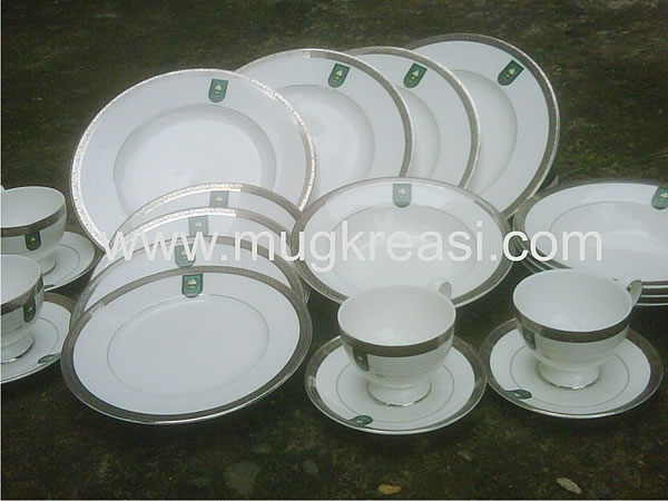 Dinner set ini terdiri dari 5 item, yaitu piring makan, piring kue, Mangkuk, cup dan saucer.